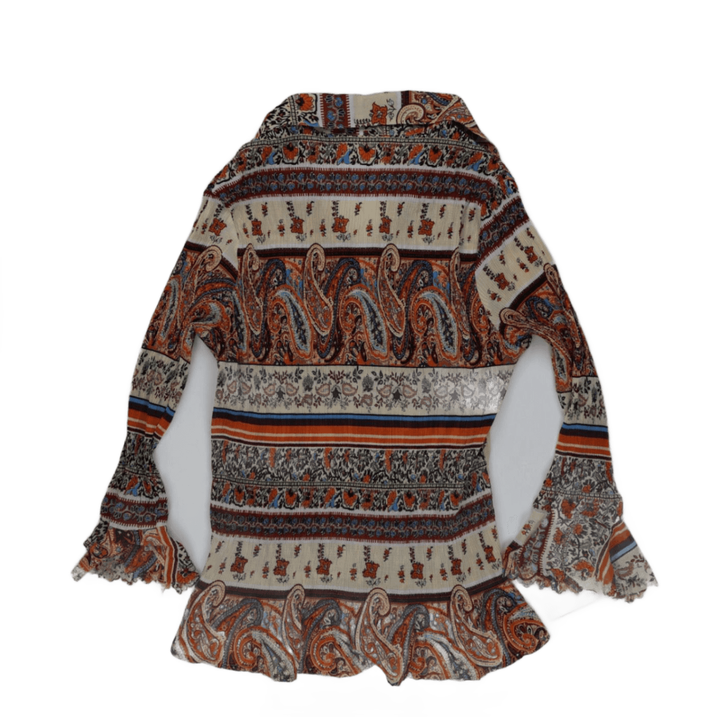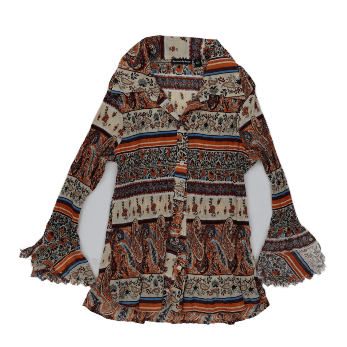 Step into bohemian charm with the Essentials By Milano XL Multicoloured Paisley Stripe Boho Blouse Top for Women. Designed with a flowing silhouette and flared long sleeves, this lightweight polyester blouse brings effortless retro flair to any wardrobe. Featuring an eclectic mix of paisley and stripe patterns in warm earthy tones, it is perfect for casual outings, festivals, or chic everyday wear. The XL size ensures a relaxed, comfortable fit, suiting a variety of body shapes. Style it with jeans or a maxi skirt for an easy day-to-night transition. This stylish blouse is a must-have for lovers of vintage-inspired fashion, combining comfort and unique design for every occasion.